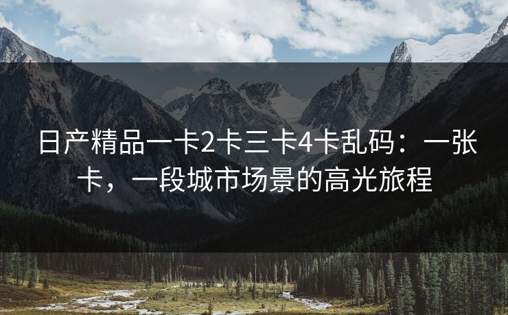 小标题1:序曲——在光影之间解码日产精品一卡2卡三卡4卡乱码在夜色笼罩的城市里,一张看似普通却极具象征意义的卡片,像一枚打开未来城市的钥匙。它被称作日产精品一卡2卡三卡4卡乱码,听起来像是密码般的组合,但背后的内涵却是极为具体的生活体验:第一层是一种高端出行的信任感,第二层是一种跨界协作带来的资源整合,第三层则是数字化时代对个人时间的珍视与守护。